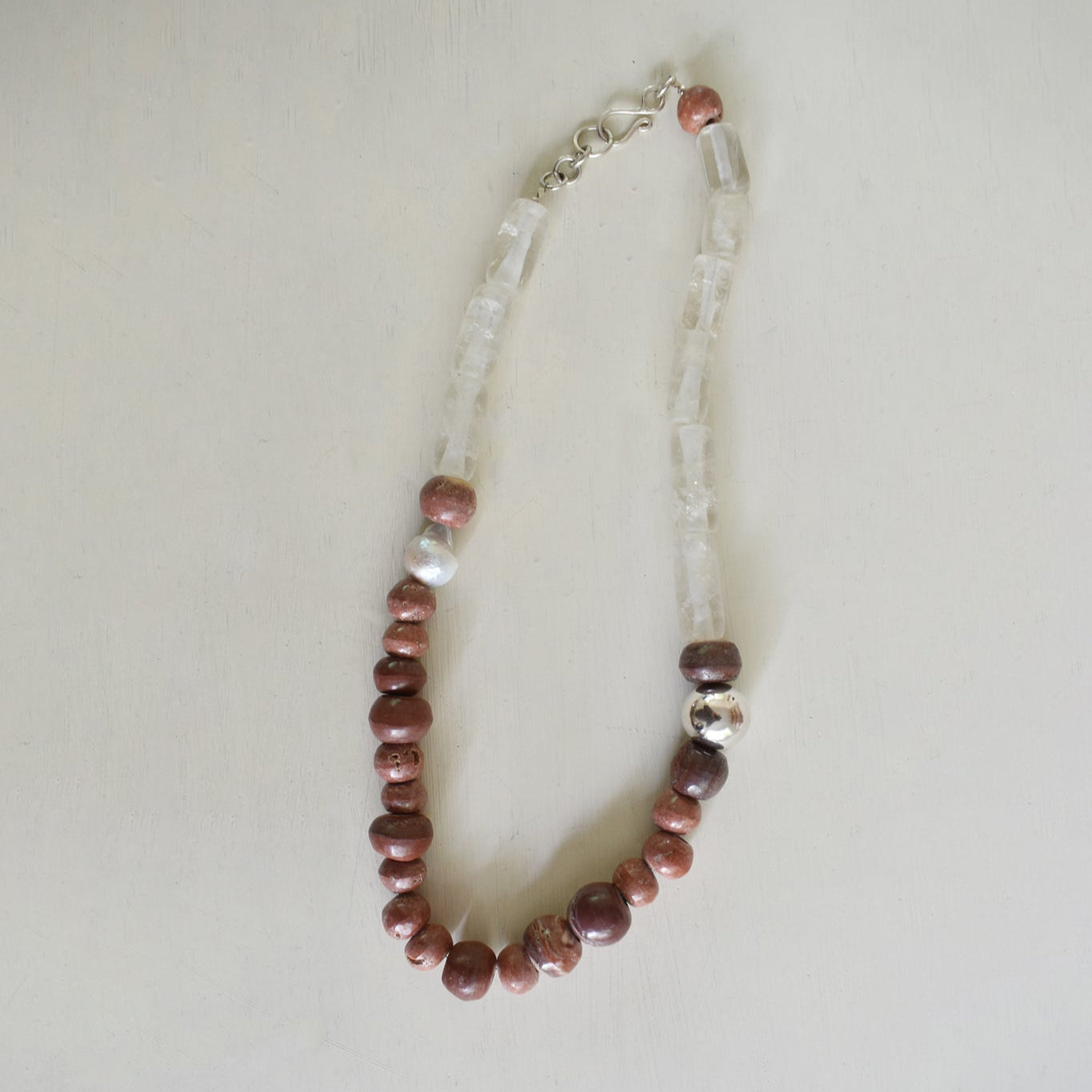 Jasper, stone crystal, baroque pearl and sterling silver 925.